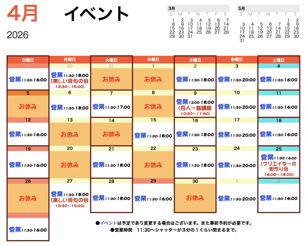 4月のイベントスケジュール