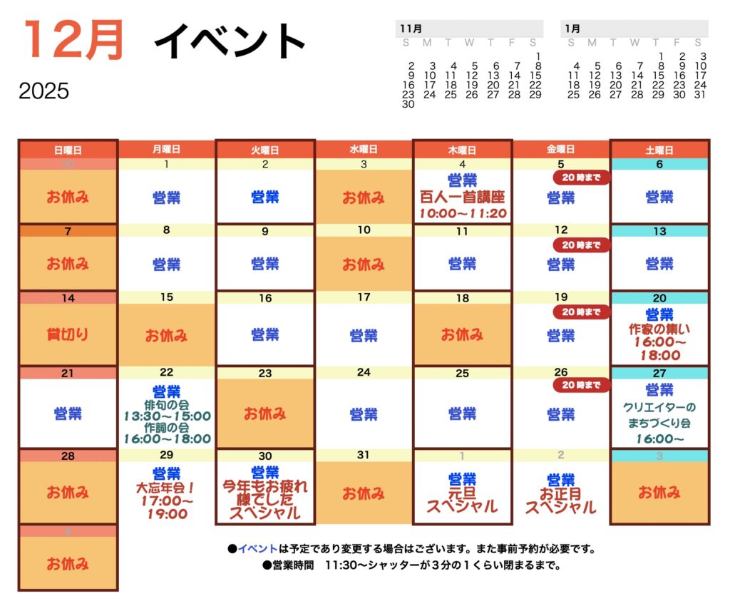 12月のイベントスケジュールです。